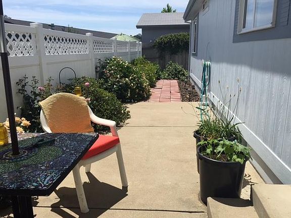 PRIVACY in a park with over-sized kitchen with extensive storage, and gas stove. Relax in your Jetted garden tub, enjoy high quality flooring, a huge walk-in master closet, ceiling fans throughout the vaulted home. Also features a covered, shaded, carport, self-sufficient landscaping, free RV parking, security door, storage shed, all in quiet LOS ROBLES 55+ PARK. Wired with ADT. CB175