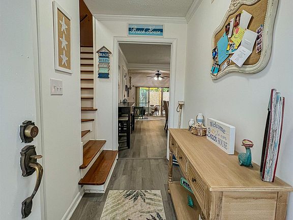 Don't miss this spacious 2 bedroom, 2.5 bath townhome style condo, only a couple blocks from the beach! Roundtree Villas is a small 37 unit community with a pool, minutes from restaurants, attractions, and so much. Units in this community rarely come on the market. Upon entering, you'll find this home has been updated to bring a more modern, beachy feel. The kitchen is off of the open dining area and living room. Through the living room, you'll find the cozy, spacious back patio, with waterproof sun shades allowing you to enjoy the area, no matter the weather. Upstairs, there are both bedrooms, with a full bath for each. The bedroom furniture conveys with the purchase of the property, and it is ready to house your family for your next vacation. Can't forget the personal balconies off of each bedroom as well for that morning cup of coffee! Short term rentals ARE ALLOWED, as well as long term.