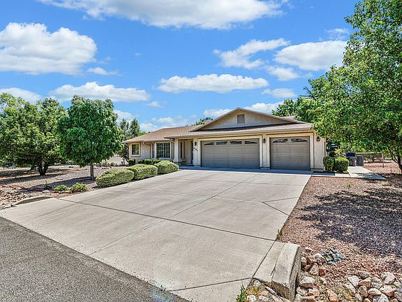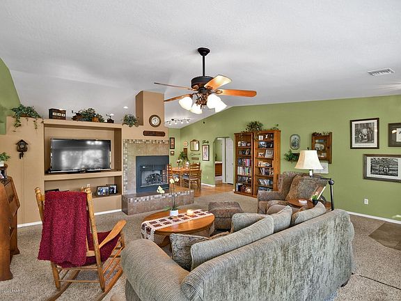 Immaculate well maintained home in the heart of Prescott Valley with no HOA! This 3 bedroom, 2 bath, 3 car garage is 1691 square foot and is situated on a fully landscaped .25 acre lot. Built in 2001, this home has tons of natural light and upgrades throughout. The bright and cheery living area has a large fireplace and the adjacent kitchen features granite countertops and an eat in dining area/bar top. The master suite has a nice walk out to the back covered patio and the master bathroom has a double vanity and walk-in closet. The split floor plan has two guest bedrooms opposite the living area. There is a huge three car garage with room for everything!