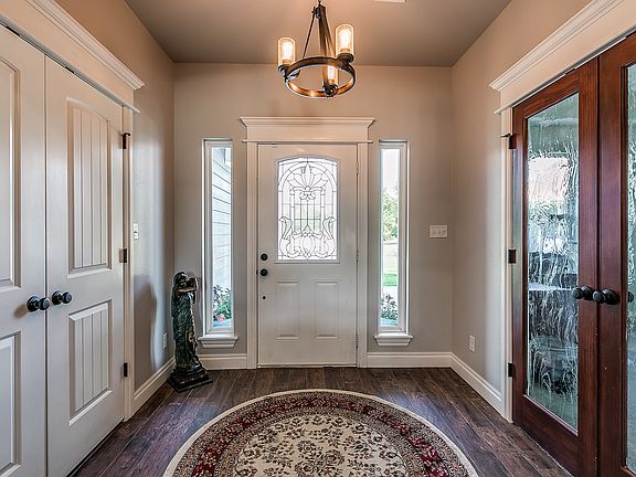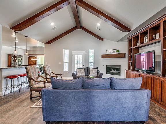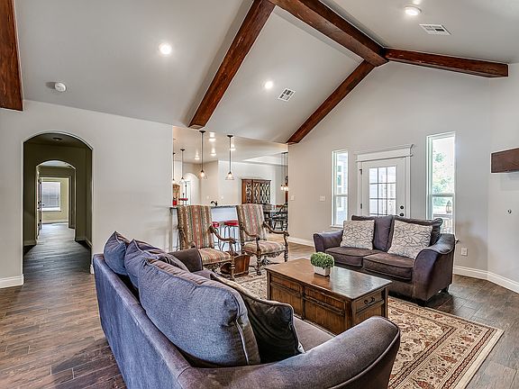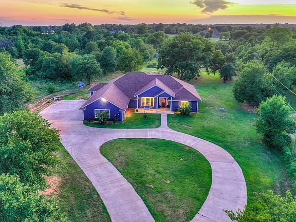 Welcome home to this beautiful modern farmhouse with flair! 3 beds, 3 baths, study, or 4th bed and 3 car garage! As you arrive, you'll be greeted with your own private estate situated on 2.5 acres of land! It boasts an open concept w/spacious living/kitchen, large gorgeous island with top of the line granite, trash compactor, apron sink, built in refrigerator, double ovens, 6 burner gas stove, extra large pantry, fresh paint, tons of storage, wood look tile, travertine tile, memory foam carpet in bedrooms, dining with beautiful barn doors leading into another living area, large study w/full bath attached, mud area, laundry room with sink and tons of storage, large covered patio, large master, jack-n-jill bath with separate vanity rooms, luxurious master and master bath with access to the backyard and all bedrooms have large walk-in closets! Extra spray foam insulation making it very energy efficient, storm shelter and 60X40 concrete pad ready for a shop! Tour this amazing home!