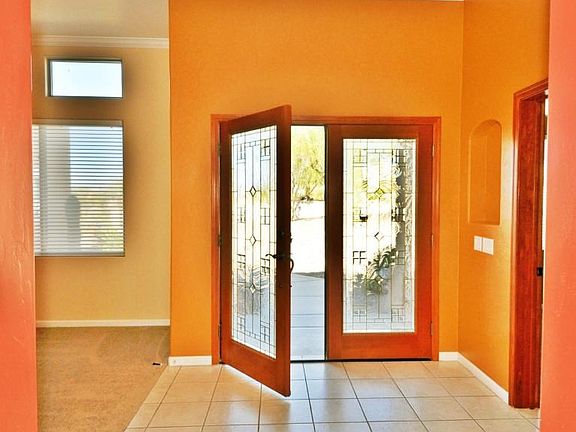 Sweeping Valley & Mountain Views! Private canyon behind backyard view fence! Landscaped w/full length cov patio, outdoor fireplace, Pool(with 2 seating shelves) AND THE ULIMATE IN PRIVACY - no neighbors in view! Custom Sante Fe! Hand finished stucco. Entry doors open to foyer w/living rm to the left & formal dining rm to the right. The foyer reveals a huge great room w/wall of windows, open kitchen & B-Hive fireplace. Split Bedroom plan. Owner's Suite is large w/corner fireplace & opens to the pool area. 8ft doors! Bedrooms 2-4 will not disappoint! New Carpeting in BRs! Wood & tile floors in all other rms! Oversized garage w/sep. storage rm! See attachment for PAS requirements and WFHM offer submittal information in MLS document section.
