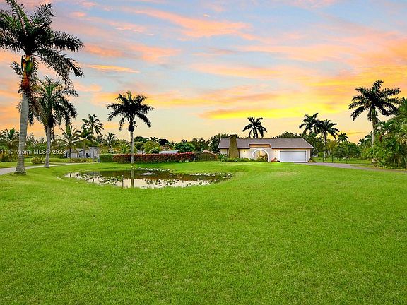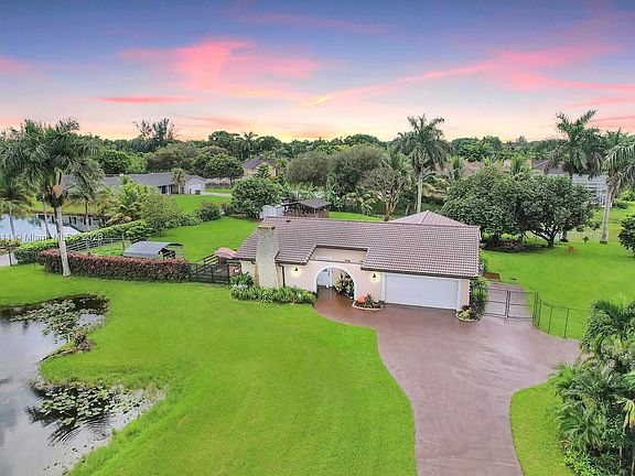 TRULY ONE OF A KIND 4 BED 2 BATH HOME SET AMID A SPRAWLING 59,242 SF LOT AWAITS IN THE EQUINE FRIENDLY SECTION OF DAVIE. UPON ARRIVAL AN ENCHANTING CURVED DRIVEWAY GREETS & WINDS AROUND A PRIVATE POND & WELL MANICURED GROUNDS. WELCOMING ARCHED ENTRY OPENS TO AN INVITING FLOOR PLAN W SPACIOUS ROOMS. THE ELEGANT KITCHEN FEATURES STAINLESS STEEL APPLIANCES & COOKING PENINSULA W A CUSTOM VENT HOOD, OFFERING SCENIC VIEWS OF THE BEAUTIFUL PRIVATE GROUNDS. COZY UP IN THE FAMILY ROOM AROUND THE ROMANTIC FIREPLACE. PRIMARY SUITE INCLUDES AN ENSUITE BATH W DOUBLE VANITY & OVERSIZED SHOWER. CHARMING FRENCH DOORS OPEN TO SCREENED PATIO PERFECT FOR OUTDOOR DINING WHILE ENJOYING SUNSETS & SERENE VIEWS. NEW ROOF, IMPACT WINDOWS. BARN HAS 2 STALLS, 2 CAR GARAGE, BOAT & RV PARKING & NO HOA.