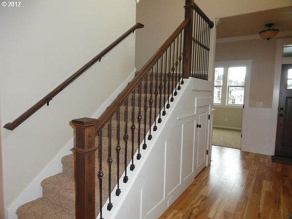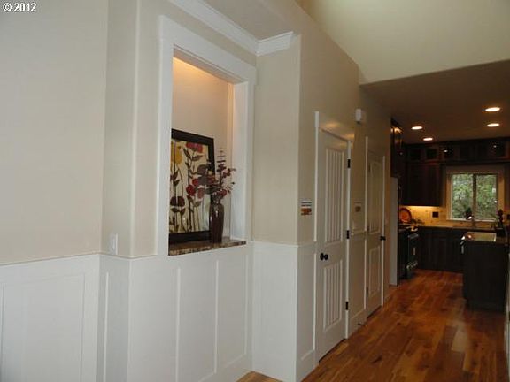 Beautiful new home with custom finishes. 3 large bedrooms + main level office. Master has Soak tub & walk in shower. Large Master closet. Quiet neighborhood. Landscaping with sprinklers. Upgrades are standard! Hardwood & tile floors, slab granite counters, wainscoting, crown molding, garage door opener.