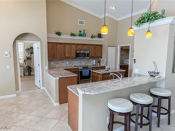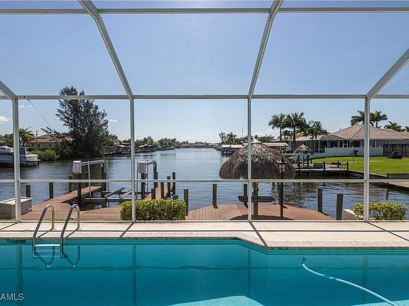 Enjoy LONG WATER VIEWS down an extra wide 200+ foot Gulf Access canal. This home features an Open Floor plan, 4 Beds/2 Full Baths and a 2 Car Garage. The Stunning kitchen is remodeled with granite counters, updated wood cabinets, back-splash, island, and pantry. Open concept living room overlooking panoramic water views from the sliders and windows! High cathedral & tray ceilings, 7 1/4 crown molding, and custom lighting & fans. Master bed with high tray ceilings & overlooks the water. Updated Master bath with granite counters, glass walk-in shower, and jetted tub. Spare bedrooms & full guest pool bath. Solar heated pool overlooking breathtaking water views. Great vacation house every day! BOATERS 680 ft wrap around dock with 10K lift. Tiki Hut to for relaxing on the water in the coveted Cape Harbour area of SW Cape Coral. May 1-Nov 30 is $220/night or $5,000/month. Dec 1 - April 30 is $9,000/month. A discount may apply if rented longer than 3 months. Basic covering for utilities for water $50 per month and for electricity $100 per month.