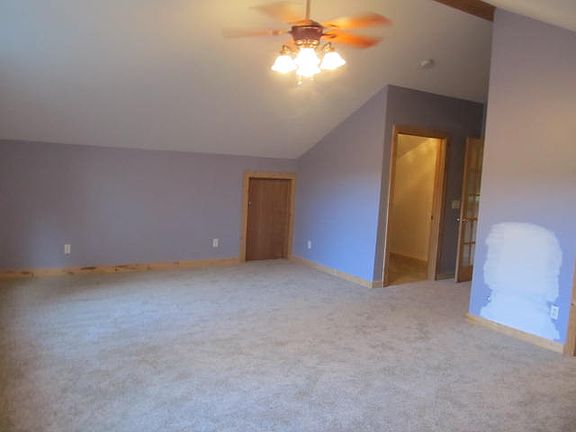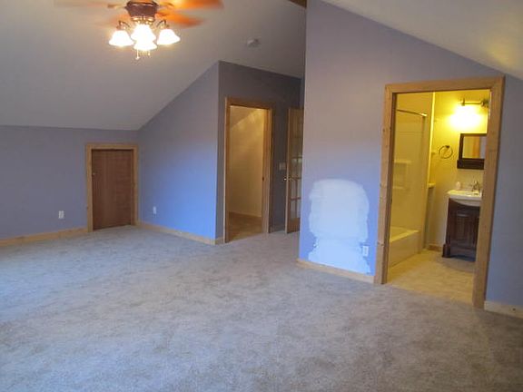 Wide Open Spaces! Soaring living space with wood ceilings, large main floor bedrooms and laundry area. Second Floor is entirely the master suite. Walk out lower level is a great space to finish if you need even more room. Total 4 bedrooms 2 baths on 14.75 Acres. Home has a large detached garage.