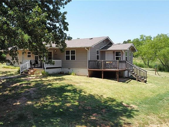 This lovely home sits on a turnkey homestead with 10 beautiful acres!! Three bed, 2 bath home with a spacious kitchen and large laundry area, mud room , storm shelter/cellar with amazing outbuildings. Newer appliances and gorgeous backsplash in kitchen with lots of storage. New lighting in dining area also. The outbuildings are multi use buildings with newly redone carport area. Fruit trees & berry bushes have been planted as well as an established garden area. Chicken coop and quail coop built on property (chickens and animals will not stay) and new lateral lines run. Lots to see on this beautiful 10 acres so book your private showing today!!! Buyer to verify all information.