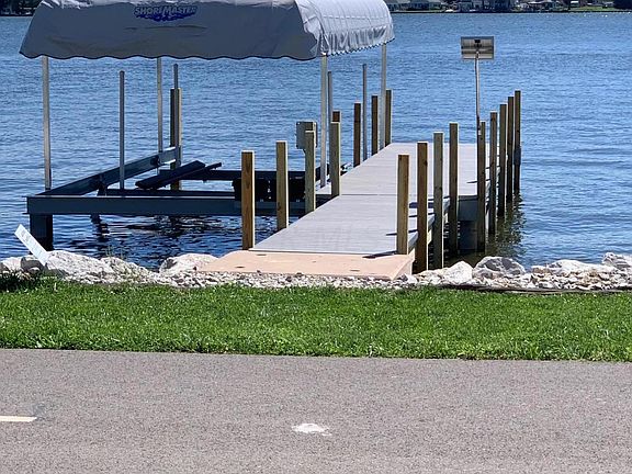 Main lake views to die for! Beautiful updated waterfront home with lots of room for all the family! Situated along the new dam with a 4 mile bike path right outside your door. Brand new cantilevered dock with composite decking and gangway with solar lift and canopy just completed. Lake level has open living room, dining area and kitchen, along with 2 bedrooms and 1.5 baths. Four bedrooms total, with 2 on the street level. Two car attached garage and additional lot across the street for additional parking. Front patio maximizes outdoor space and lake views. Close to local brewery, yacht club, boat & kayak, bike rentals and lots of local restaurants. Buckeye Lake has many opportunities to boat to for dining and entertainment.