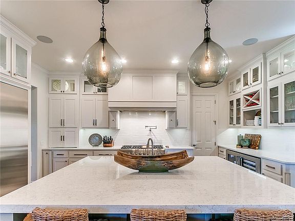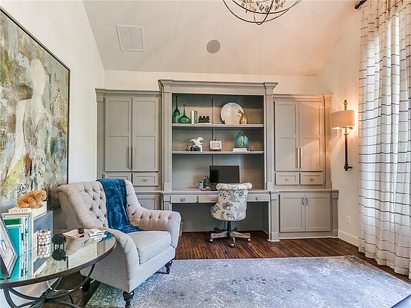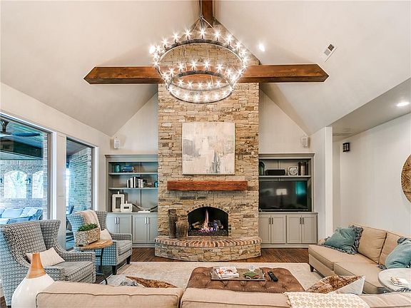 Beautiful Luxury home in East Edmond gated neighborhood. So much attention to detail can be found in this amazing custom-built home. The upgrades start on the exterior with completely irrigated 2.15 acres of gorgeous fescue grass, mature trees, stone walkways, lush landscaping. Beautiful outdoor space includes a wood-burning fireplace and outdoor kitchen with grill, so much peaceful privacy added by the design of this home. Plenty of room for cars with the oversized 4-car garage. As you enter the home you will find hardwood floors throughout, custom drapery, custom hardware, Hunter Douglas remote controlled shades in master bedroom, plantation shutters, Crestron sound/home automation system, surround sound, wall panel control center and remotes, all upgraded Thermador appliances. There are 4 spacious bedrooms downstairs all with bathrooms en suite. The upstairs bonus room is designed with a private bathroom and large walk-in closet and could be a 5th bedroom if needed.