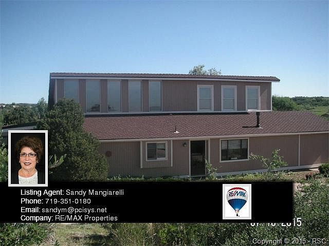 Fabulous setting for VERY unique property. Natural rock outcroppings, 3 separate patio areas to enjoy the beautiful evening lights as well as Pikes Peak and mountain views. Main level living at it's finest with the bonus of a loft/ study and plenty of accessible attic storage. Main level has a great room feel with gas fireplace as well as cozy den/family room with another gas fireplace. Glassed in sun room with spectacular views adjoins the great room. Roomy bedrooms and main level laundry, updated kitchen with pantry Flag lot at the end of a cul de sac with plenty of parking and privacy. This property is spectacular in EVERY way. Hard to find large lot like this one Listing Agent: Sandra Mangiarelli Company: RE/MAX Properties, Inc. Phone: 719-351-0180 Email: sandym@pcisys.net
