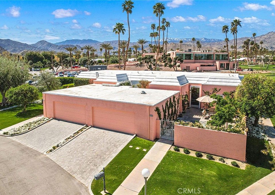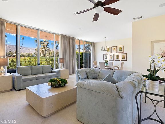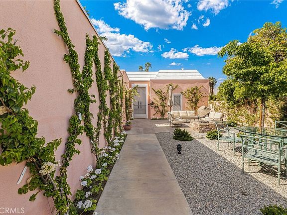 Welcome to Marrakesh Country Club, the Jewel of the Desert. Marrakesh is a boutique golf community designed by renowned Hollywood architect, John Elgin Woolf. The community is located right in the heart of Palm Desert, just a stone's throw from the upscale shopping and dining district of El Paseo. This updated 1 bed, 2 bath classic home features an oversized beautifully landscaped front courtyard, a wood-burning fire pit, and an outdoor shower nestled in the atrium. As you step through the oversized double doors, you'll be welcomed into a spacious living room and dining room, complete with a wall-mounted surround sound TV, modern electric fireplace, and a new Air conditioning system. The kitchen boasts new appliances, an adjoining laundry room, and a pantry for all your culinary needs. The true beauty of this home lies in its panoramic views - walls of glass open to a rear patio that leads you to a brand new putting green and a state-of-the-art, brand new Stunning Clubhouse which opened just this year. The lush desert landscape adds to the ambiance, making this home a true oasis. Come and experience the Magic of Marrakesh!