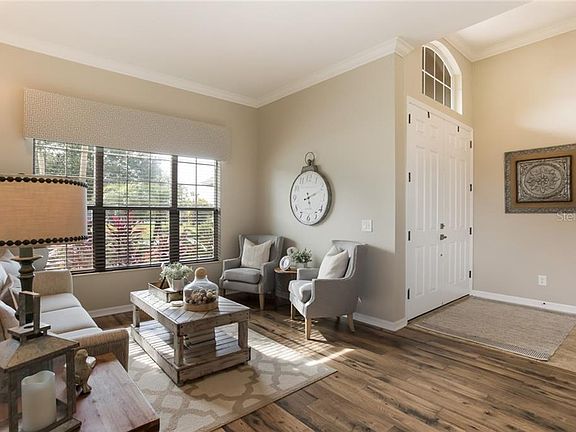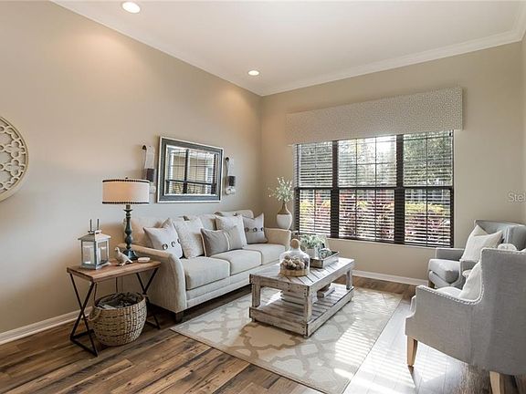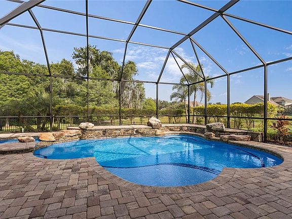Located on a coveted, extra-large lot in a sought after gated community, this magnificent home offers beautifully maintained spaces with fantastic upgrades & scenic preserve and pond views. Boasting stunning curb appeal, all who approach are greeted by lavish landscaping and attractive stone detailing. Relax or entertain in the bright, open concept main living with attractive laminate flooring and elegant crown molding. Every chef will adore the kitchen, complete with granite countertops, farmers sink, stylish subway tile backsplash, breakfast bar and stainless-steel appliances including a double oven. The kitchen gracefully opens out to a breakfast nook and living room with gorgeous views of the pool & pond. A lovely den with elegant aluminum ceiling adds comfort and charm. Located opposite the other bedrooms the luxurious master enjoys its privacy. Enjoy a walk-in closet with custom organizer, access out to the pool, and magnificent spa style ensuite delineated by lovely French doors with soaking tub, dual sinks & walk in shower. Not to be missed, this home's fabulous saltwater pool is surrounded by pavers and boasts over 70K in upgrades. Added in 2015, the pool includes a relaxing jacuzzi with tranquil waterfall and excellent LED lighting. The spacious three car garage has been partially converted to an A/C workshop. This wonderful home had been meticulously and continuously maintained offering new pool screens and fresh interior and exterior paint. Nearby shopping, dining & easy access to I75.
