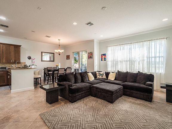Luxuriously updated, light, and spacious, 3BR/2.5BA + oversized loft open-plan on the BEST premium waterfront lot in all of Paloma. A family-oriented, private gated community in Palm Beach Gardens. Desirable features include a 2 car garage, volume ceilings with crown molding and recessed lighting, porcelain tile flooring, open concept kitchen with stainless steel appliances, large windows and sliding glass doors, neutral colors, a large master suite with deep walk-in closet and a screened in patio area with a fenced-in grass space overlooking the lake and fountain.
