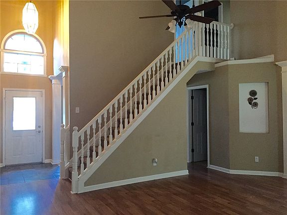 Grand foyer welcomes you into the great rm with soaring cathedral ceilings and tile framed fireplace. Kitchen includes full compliment of appliances & center island. Enjoy the privacy of your main floor master with cath ceilings, jacuzzi tub, sep shower, dbl sinks & WIC. Dining rm & kitchen both framed w/beautiful columns. 2 add'l BR upstairs & bonus rm that could easily convert to 4th BR leads to multi level deck. New carpet throughout & brand new roof! Home warranty included!