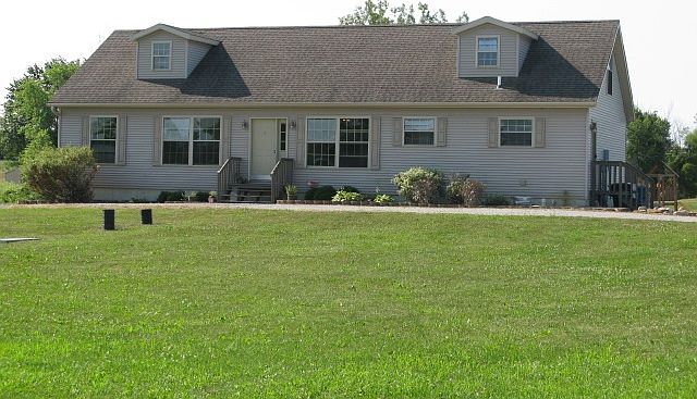 This beautiful 5 bedroom/2 bath home sitting on 6.3 acres is move-in ready. The main floor offers a beautiful eat-in kitchen with island and breakfast bar, raised panel cabinets with pull outs, very nice stainless steel appliances, and laminate wood flooring. Living room has a gorgeous wood burning fireplace. Dining area has a sliding glass door that opens to the 12 x 60 deck that overlooks the children's play area and back pasture. The den has built in bookcases. The mudroom has a utility sink and built-in bench. Master suite that offers a walk-in closet, jetted tub, and separate shower. The upper level has a large 21 x 12 loft area that would be a great game/play area for the kids, and 2 bedrooms. The partially finished 1620 sq. ft. walkout basement would make a great family area. This home offers 8" walls and 9' ceilings. All walls have fresh paint. There is a 10 x 18 utility shed and a 30 x 60 pole barn that has (3) 10 x 12 box stalls - 2 of which have access to the outside, and a 6 x 10 chicken coop. This home is a must see and priced to sell at $224,500.