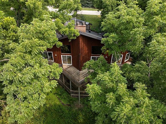 Welcome to your dream home, a stunning example of 1970s mid-century modern design that has been masterfully updated to blend classic charm with contemporary elegance. Nestled on a cul-de-sac and embraced by lush trees, this one-of-a-kind residence feels like your own private treehouse retreat. Designed by the Dean of ISU Architecture in the 1970s, this home is a true architectural gem, & it has been meticulously transformed to meet today's highest standards. With over 2,000sf of interior finish it showcases level 5 drywall throughout, providing a flawless backdrop for the new, engineered hardwood flrs that flow room to room. Every detail has been considered, from the newly renovated kitchen, new roof, & bthrms featuring heated tile flrs in the master bath to the 6 brand-new sliding glass doors that open directly to expansive decks. These decks offer views that make you feel as though you're living in an actual treehouse. Modern comforts have also been seamlessly integrated w/ cutting-edge technology. The home is equipped w/ a Google smart home system & Lutron lighting, ensuring both convenience & efficiency at your fingertips. LED Smart lighting & new outlets/switches further enhance the home's modern functionality. This unique residence is more than just a house; it's a testament to innovative design & timeless elegance. Seller is offering a $20,000 closing credit towards Buyer's closing costs or allowance for exterior updates! All info obtained from Seller & public record.