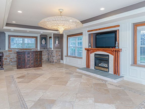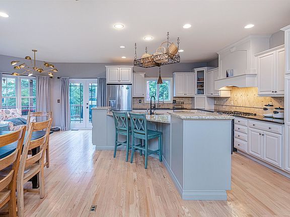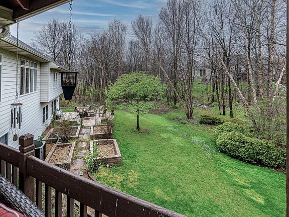 Come home to this 4 bedroom home with a beautifully landscaped large, private yard and sit on your covered deck or patio, enjoy the songbirds and recover from a long day at work. You'll enjoy the large kitchen, dining and hearth room with real oak hardwood floors and see through fireplace, large island, and breakfast nook. The living room features a fireplace and gorgeous marble flooring and large windows overlook the backyard. There is so much room for entertaining on the main floor in or in the basement which features a large family room with marble tile flooring and amazing bar and and homemade rustic wet bar. Step out of the family room to the back patio to enjoy your fire pit with friends. There are three large bedrooms and two full bathrooms in the basement and it's plumbed for a