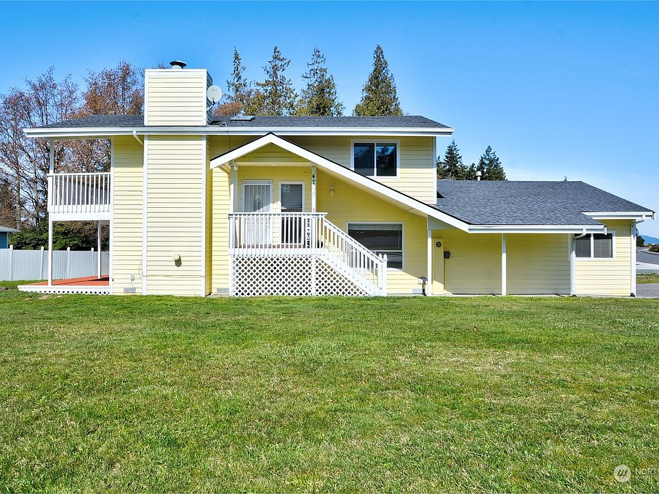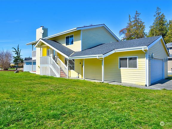 Beautiful home on huge corner lot in the desirable neighborhood of Clearidge. Gorgeous mountain views and partial view of the sound. Open floor plan with vaulted ceilings, beam, and large windows for tons of natural light. Updated primary bathroom has huge tiled walk-in shower. New gas furnace, tankless hot water & roof. Lower family room and bedrooms have separate entrance, so could be used for multi-family living. Mud room with cabinets off over-sized two car garage. Wrap around covered deck for outside entertaining. Plenty of parking for boats and RV's. Common areas include Pickleball, Tennis court & basketball court. Wonderful neighborhood for walking, biking and enjoying the spectacular views. Close to ferry and downtown Anacortes!