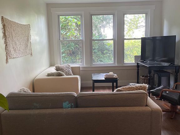 Lovely renovated home w/ 3 bed, 2 bath, 1280 sq ft. Freshly painted. Open first floor layout with kitchen bar and breakfast nook. Quiet, dead-end location. Large property with lots of green space. Spacious basement boasts 4th bedroom for guests, 2nd full bathroom, laundry, small shop area, ample storage, and walk-out door. Outdoor space includes front porch, off street parking, secluded backyard, shed, and great views over top of the Allegheny Cemetery. All of this just a few blocks off of Penn Ave. The property is a double lot at the very end of Kincaid St. Beyond the house there are 10 acres of city owned woodlot. Behind the house and across the street is the Allegheny Cemetery. The charm of the place is the green space that surrounds it and the amazing amount of quiet afforded by the location. The house is remodeled and updated. New furnace is less than 2 years old. Full-home air conditioning. All appliances included. House has a modern wood stove to help with heating costs over the winter. Pets are evaluated and permitted on an individual basis. The shady and private back yard provides a great place to play with pets and children. The block of Kincaid St. boasts a great mix of friendly neighbors of all ages. Renters are responsible for all utilities and lawn maintenance. One month's rent (negotiable) due as deposit at signing of lease. Tenants are responsible for professional cleaning costs when departing the lease. House trained pets are permitted on an individual basis. No smoking. Off street parking available for 1 to 2 vehicles.