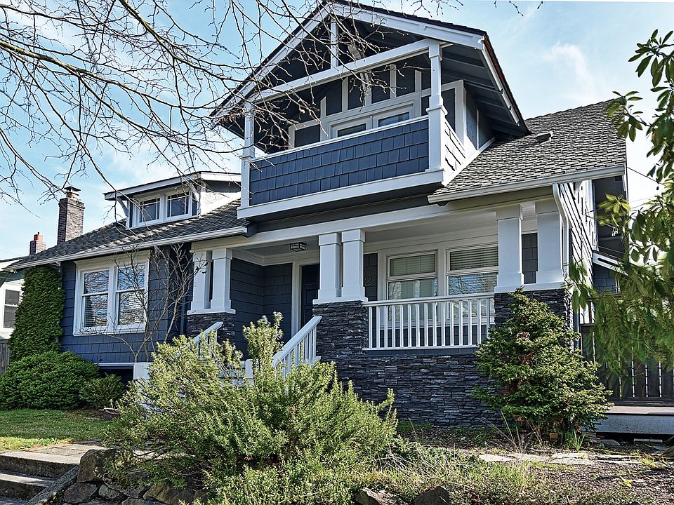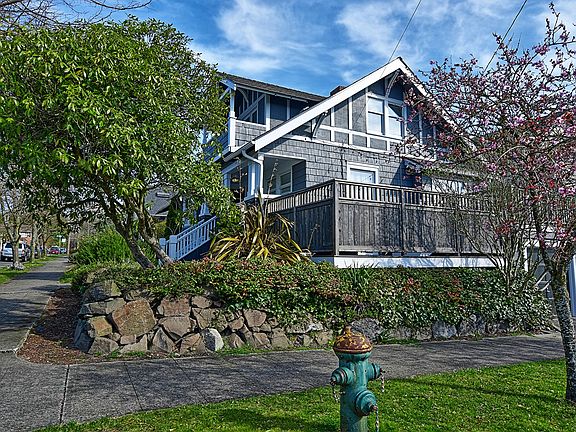 Charming light-filled 1920s 5 BR Craftsman in upper Fremont on a corner lot featuring rocking chair front porch, newly renovated exterior w/ new Presidential Shake roof, Trex wraparound porch and enclosed fence, original hardwood floors, box beam ceilings and wainscoting detail, chef’s kitchen w/ stainless steel appliances and island. 2 spacious bedrooms on main level with 3 more upstairs, including updated master bath and bedroom w/ private view deck. Updated basement includes entertainment room, home gym, laundry room, access to garage / shop, with additional storage space. Convenient location blocks from Woodland Park & Zoo, Green Lake and the amazing restaurant / shop scene on Fremont Ave / Phinney Ave and Stone Way!