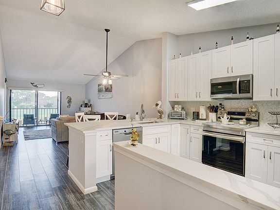Completely remodeled ALL AGES two bedroom, two bathroom condo plus den/office. Open, split bedroom floorplan. End unit. AC 2023, hot water heater 2018, newly screened patio overlooking the golf course and a new screen door. Lucerne Greens is a friendly community with a great location close to the Turnpike, shopping, dining, and a 15-minute drive to the beach. New Roofs and gutters throughout the community. The 79-acre area is being developed to create a new community set to launch in Fall 2024. This project will feature new infrastructure, walking paths, townhomes, and single-family homes. It is expected to boost the local economy and increase home values in the area.