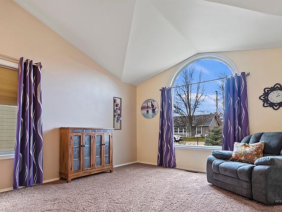 This stunning single-level home in Bretton Woods is your picture of perfection. Completely updated for peace of mind, enjoy a NEW Carrier gas furnace & AC unit, updated windows, water heater, bathroom counters, designer lighting, exterior paint, fencing & more. The light-filled kitchen boasts updated flooring, vaulted ceilings, gorgeous cherrywood cabinets, breakfast bar & high-end Bosch appliances making cooking a delight. Unwind in the spacious primary suite, which features calming backyard views, a large walk-in closet, a luxurious bathroom featuring updated vanities & a comfort-height toilet. The functional floor plan offers a private front entry office, a dedicated laundry room & a large versatile secondary room with ample flex space. Relax in the east-facing backyard oasis. Enjoy the extended cement patio, easy-care landscaping & the convenient 10'x8' storage shed year-round. Desirable Boise location, walking distance to Hyatt Lakes Reserve, with access to everything you need. Fantastic opportunity!