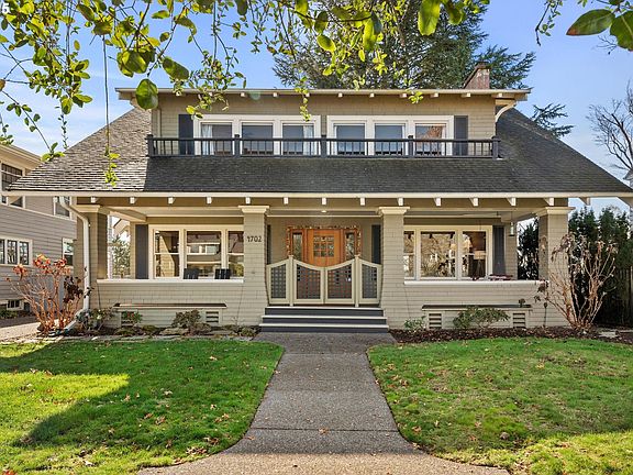A Thousand Welcomes! Built in 1911, this exquisite Craftsman is just minutes from the best amenities in both the Hollywood and Beaumont Village neighborhoods. Blending vintage charm and thoughtful updates, this rare gem boasts leaded-glass built-ins, original oak hardwoods, handsome woodwork, and whimsical tile. The open kitchen features custom cabinetry, high-end appliances, quartz countertops, and an adjacent breakfast room and coffee-klatch nook. As the old Latin saying goes, "Hunger is the best sauce! The dining room features an abundance of leaded-glass and a built-in hutch for your finest china and family silver. Off the huge living room--(with perhaps one of the largest fireplaces in Northeast Portland!)--a sunroom allows you to work, breathe, or simply take in the downtown views and sunsets. Upstairs you'll find three huge bedrooms and a study. The 2018 primary suite remodel adds modern elegance, a huge-walk-in closet, and a gracious bathroom. A second full bath features a shower, clawfoot tub, and beautiful stained glass. More surprises await on the lower level; a rumpus room, full bath, laundry, walk-in cedar closet, workroom, storage galore, and garden shed. Step outside to flagstone pathways, a spacious deck, hand-stacked stonework, and a firepit under the shade of a magnificent Deodar Cedar. The converted garage shines as the perfect party room with Brazilian cherry wood, a cozy wood stove, built-ins, wet bar, and half-bath. Whether you envision this as a cozy gathering space, a home office, or a guest retreat, it’s ready for your imagination. Extra Perks Include: Decommissioned oil tank, new $17,000 boiler furnace, on-demand water heater, separate water heater serving primary suite, AC upstairs, and high-end window treatments. Don’t miss this once-in-a-lifetime opportunity to own some Portland history! Schedule your tour today! [Home Energy Score = 1. HES Report at https://rpt.greenbuildingregistry.com/hes/OR10235893]