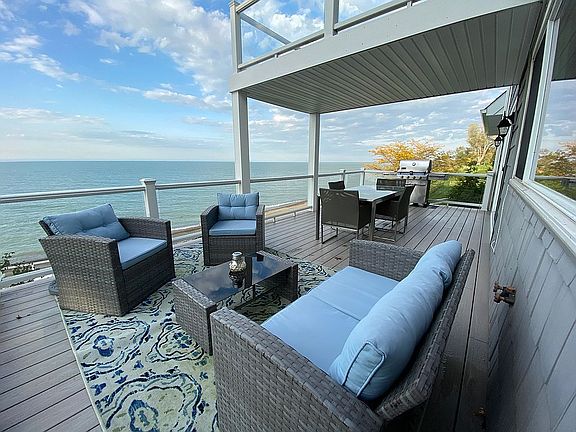 Your own private beach. A stunning lake house perched safely overlooking a Great Lake. Paddle boarding, kayaking, sailing, jet skiing, bonfires, fishing. Not “beach access,” not “beach views.” IN YOUR OWN YARD OFF YOUR OWN BEACH! This is once in a Iifetime. This is the dream. This beautiful home is hidden in the oasis of the Mentor Headlands. Built in 2004, it has been thoroughly updated by the current owners to fully capture the feeling of living on the shore of Lake Erie. Everything has been carefully curated to maximize this feeling, from the giant walls of windows and sliders on the north side of the house, to the glass railings on the numerous weatherproof decks. A post and beam home with spacious open interiors, it really has that Nantucket feel. Inside, you will find unobstructed views of Lake Erie pouring in, with lighthouse views just a bit to the east. The newly remodeled kitchen was featured in a 2018 edition of NARI (National Association of Remodeling Industry) magazine. The galley sink is a feature that-once you use it- you will never be able to do without! A three car garage, as well a larger finished basement that can easily be used as an in-laws suite are just a few more high points of this spectacular property. Come visit and be mesmerized by 4702 Orchard Rd.