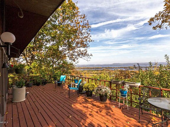 Have your own ''tree house'' offering privacy with a million dollar view of the Mississippi River valley. Recreational acres for hunting, hiking and lumber harvesting. This delightfully home is filled with natural light from two walls of floor to ceiling windows, wrap-around deck, great for entertaining, magnificent views, vaulted ceiling, sunlight and breezes, impressive