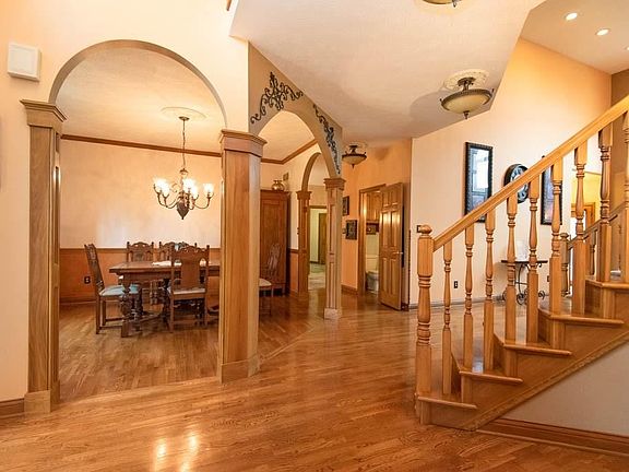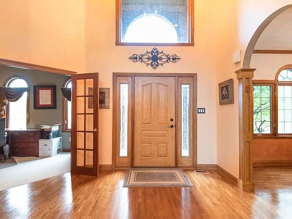 Fabulous Custom Dream Home design. 3-Levels, Finished Theater/Family Rm, Game Room, Wine Cellar & full Bar-walkout Basement. Stunning main level Master Suite 32x17 area, 2-way Fireplace over Jetted Tub. 2nd Floor 17x17 Guest Suite With private Full Bath. Jack N'Jill Bath connects Beds 2&3. All with Walk-Ins! Huge Grand Entry-spindled Catwalk Overlook. Great Rm, Fireplace & Barrel ceiling. Sun room w/HOT TUB SPA & 5 Bath. Dual 2+Car Garages= 4+ Gar. 2 Acre rolling country home site. Large Deck, Roof replaced April 2020.