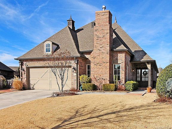 Beautiful oasis! Wonderful landscaped lot on a cul-de-sac. Large lot, sprinkler system, and large extended relaxing patio with ceiling fans. High ceilings, wood beams, and kitchen open to the family room. Additional room with a second fireplace could be used as a formal dining, office/study or formal living room. Master suite plus one bedroom down. 3rd bedroom up with a private bath can also be a gameroom or theater room. New Bixby elementary school scheduled to open Fall 2020.