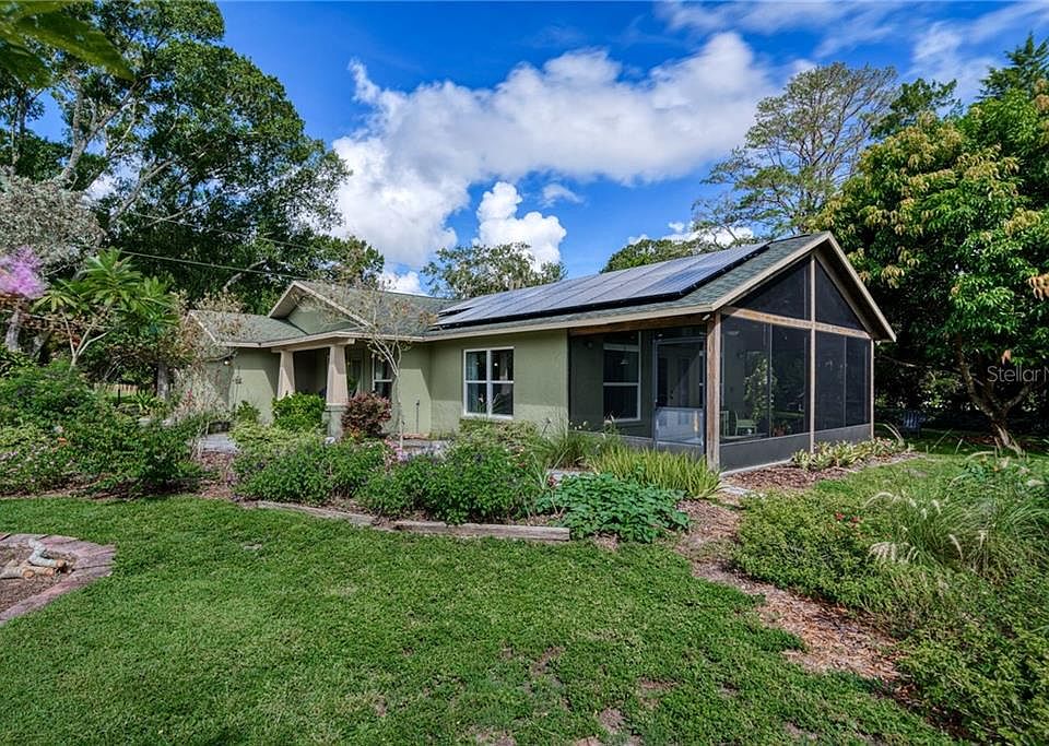 Beautiful home with .72 acres of land in a great location of South Sarasota and end of the road privacy. Gorgeous garden with lake frontage and mature trees makes this a dream yard that you can enjoy everyday. Large kitchen with an induction cooktop and convection oven, quartz countertops & plenty of storage space. Vinyl plank flooring, newer water heater, new garage door opener, hurricane windows and many other updates including newer solar panels which means no electric bill with only a small monthly service fee. This home has a large lanai overlooking the lake so you can sit out in the morning and enjoy the surrounding beauty. Great location only minutes from Siesta Key, shopping and lots of restaurants. This one is a must see!