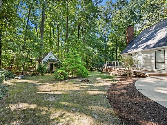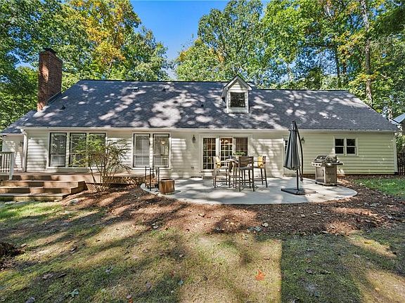 Tucked away on a quiet cul-de-sac in the sought-after Sedgefield golf course community, this beautifully updated home offers the perfect blend of timeless style and modern comfort. The gorgeous kitchen boasts granite counters, stainless steel appliances, casual bar-style dining and opens seamlessly to a spacious dining room—perfect for entertaining family and friends. The main-level primary suite is a true retreat with vaulted ceiling, walk-in closet, and a spa-like bath with a large, tiled shower and freestanding tub. All baths have been renovated with new lighting, fixtures, tile and furniture-style vanities. Throughout the home, gleaming wood floors, plantation shutters, and a cozy gas log fireplace enhance the charm and character. Enjoy outdoor living on the patio or Trex deck with hot tub, overlooking a private fenced backyard. A wired outbuilding makes an ideal studio, she-shed, or storage space. Conveniently located near Grandover shops, HPU, Sedgefield CC, & PTI. A must see!