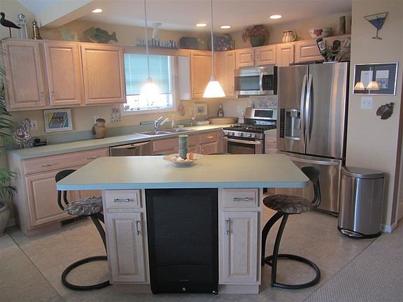 A Bayside Beauty offering unobstructed water views, stunning sunsets and comfortable summer or year-round living. A spacious upside down floor plan allows for 3 bedrooms, 2 1/2 baths and casual comfort in the living areas. The open concept kitchen features ample cabinetry, stainless steel appliances and a center island with wine cooler which flows into the living room with gas fireplace and a wall of windows to highlight the views. Experience summer the way it should be enjoying tranquil afternoons on the deck savoring the quiet and soothing bay breezes. A bonus is the oversized garage with a sitting room, workshop area, and a powder room which allows for more than enough storage space in addition to sufficient parking. Home is being sold completely furnished including the TV in the garage.