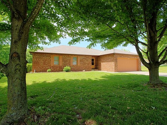 Over 1600 sf ranch on 1/2 acre in North Ozark MO -- Sharp 3 BR 2 BA w/ 3 garage spaces or 2 car w/workshop. Interior is in excellent condition, featuring large great room, beamed cathedral ceiling. BIG BEDROOMS & CLOSETS. Open kitchen w/bay window overlooking private yard. New 'hardwood' laminate through traffic areas. Tile in kitchen & baths. Roof 3 yrs old & seamless gutters. Attached garage is insulated, heated & cooled. Shop building (3rd car) 12x14 concrete flooring, electricity. Wooded yard, mature trees & landscaping, non-smoking home. Qualifies for USDA, FHA, VA -- CLOSE TO GROCERY, SCHOOLS, 5 minute commute to Springfield, 20 minutes to the Lake. ROOM FOR BOAT / RV parking.