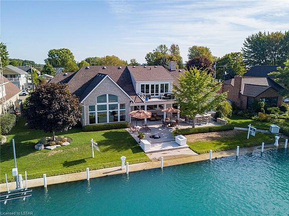 Breathtaking waterfront executive property on large lot, situated on The St.Clair River at the mouth of The Chenal Ecarte. Entertain family and friends with the outdoor kitchen, covered area with heater and fireplace making even New Year's eve a party to remember, while summer time is and absolute dream boating, fishing and swimming all day surrounding by gleaming fresh water! The docks is equipped with 2 power stations for large yachts to stay for extended periods of time. The 3800 Sqft home boasts and open concept kitchen with granite counter tops, 2 storey vaulted ceilings with gorgeous stone fireplace in the living rooms and loft with games room or yoga studio and windows and balcony letting you take in the spectacular view! With 3 bedrooms and 3 full bathrooms there plenty of space for guests and opportunity to add more bedrooms if one so desires.