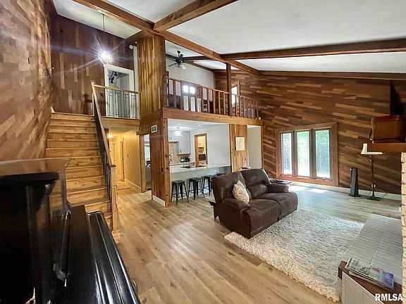 THIS MODERN OPEN FLOOR PLAN HAS BEEN TOTALLY UPDATED! CATHEDRAL CEILING LOFT OVER LOOKING GREAT ROOM, SUNROOM & DINING AREA. BEAUTIFUL CEDARWOOD WALL ACCENTS, NEW LUXURY PLANK VINYL THROUGHOUT MAIN FLOOR. NEW KITCHEN, NEW STAINLESS APPLIANCES, QUARTZ COUNTERTOPS, PANTRY & BREAKFAST BAR. SUNROOM OVERLOOKS 1/2 ACRE DOUBLE LOT. MAIN FLOOR MASTER HAS PRIVATE, UPDATED BATH. 4TH BEDROOM ON UPPER LEVEL IS 24 X 10 PLUS LOFT OFFICE/DEN SPACE. WALKOUT BASMENT IS FINISHED WITH FAMILY ROOM, LAUNDRY ROOM, AND ADDITIONAL FULL BATH. 24 X 12 COVERED PATIO. DRIVEWAY IS DOUBLE WIDE WITH ADDITIONAL SPACE FOR 2ND OR 3RD CAR GARAGE. NEW ROOF & GUTTERS IN JUNE 2023. ENJOY LAKE RIGHTS, CLUB HOUSE, TENNIS COURTS & POOL.