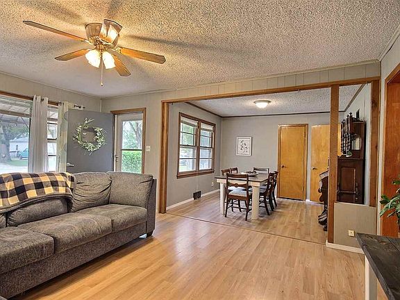 In a word -- WOW! Charming, tastefully updated property on nearly one-half acre, with massive 40'x25' work shop, in addition to 2-car attached garage! You'll love the farmhouse feel of this home, especially the renovated kitchen with island and built-in kitchen nook bench seating that opens up for extra storage space. There's also a formal dining area for special occasions. The split floor plan features a HUGE quiet, private master suite with full bath that you are sure to enjoy. Don't need 3 bedrooms? The master suite would also make a wonderful family room. Two additional bedrooms with original wood floors are down the hall, separated by the kitchen, with an additional full bath. ALL APPLIANCES STAY with home, including washer & dryer! Now back to that man cave -- it's large enough to accommodate 3+ average sized cars, gas heated, insulated, has tons of upper level storage, a separate bathroom / shower, and includes work bench, radial arm saw, air compressor with new motor, and has garage doors on opposing ends so you can drive vehicles straight through. The back yard is private and quiet, with a large concrete pad where the kids can play games while you watch from the nearby covered, screened back porch. Don't miss the adjoining acreage where an additional shed is located, as well as a car port tall enough for RV parking! A tornado shelter / cellar is located in the attached garage to protect just in case of inclement weather. This corner lot property with 2 drives also offers convenient access to Highways 35 & 135, as well as shopping and dining options. No HOA! Don't put off scheduling a showing, as this is sure to sell quickly!