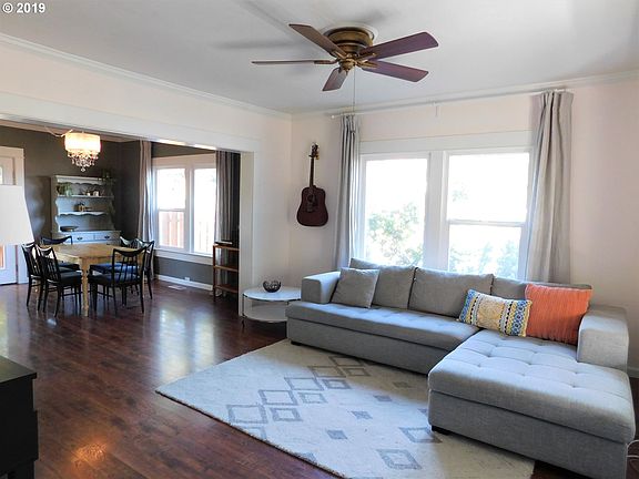 Must see charming SE PDX Bungalow on large corner lot w/many upgrades: 96% HVAC, water heater, vinyl windows, french doors, refinished wood floors in kitchen and more. Spacious living room-dining room + bonus loft upstairs & full basement. Outside enjoy covered front porch, fenced yard w/deck, dog run, 3-bin compost, raised beds, shed, large swing gate + room left in large yard for more! [Home Energy Score = 5. HES Report at https://rpt.greenbuildingregistry.com/hes/OR10028652]
