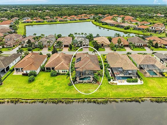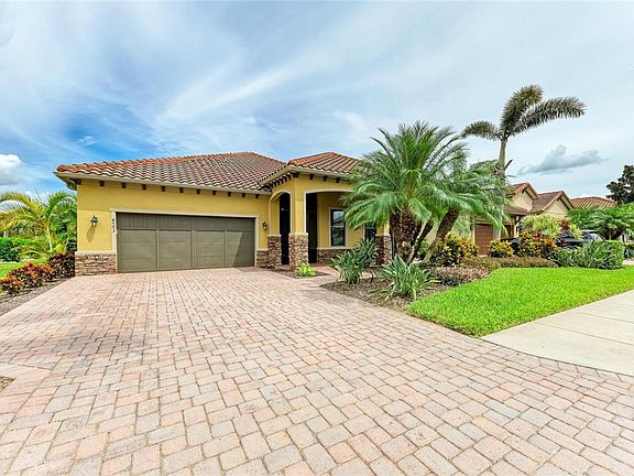 Stunning Siesta floor plan loaded with upgrades that would cost thousands more to build new! This 3BR, 2.5BA home with den features impact-resistant windows & doors—no bulky hurricane shutters needed. The spacious great room design is enhanced by custom featured stone wall with built-in cabinetry and fireplace, wood-look tile flooring, coffered ceilings, and crown molding throughout. The chef’s kitchen boasts an expanded island, expresso stained wood cabinetry, granite counters, backsplash, walk-in pantry, stainless appliances, wall ovens, and gas cooktop. Enjoy Florida outdoor living at its best with a solar heated saltwater pool & spa overlooking expansive lake views and outdoor kitchen with blackstone grill, sink, refrigerator, and polymer cabinetry. An added bonus, this homeowner installed electronic hurricane shades about the complete covered lanai area. The oversized primary suite offers a relaxing retreat with a free-standing soaking tub, Roman shower, and HUGE walk-in closet. Guests enjoy privacy with 2 additional bedrooms with convenience of a Jack & Jill bath, while the den makes a perfect home office or flex space. The laundry room provides excellent storage, and the enlarged garage features a 4’ extension plus durable epoxy flooring. Meticulously maintained with upgraded landscaping, lighting, an inviting paver front porch, screened front entry, expanded driveway gives this A+ curb appeal. A perfect home for those who value low-maintenance living, convenience, and a touch of luxury. Whether you're seeking an active or a more relaxed environment, Rosedale has something to offer each member with this community. With the social membership to the Rosedale Golf & Country Club, you can enjoy amenities of tennis, bocce courts, 22,000 square foot clubhouse with a heated junior-size Olympic swimming pool, fitness center and daily workout classes and access to personal trainers. The Clubhouse features a full-service restaurant that hosts numerous social events and activities throughout the year. For the avid golfer, Rosedale Golf and Country Club offers various levels of golf membership as well. HOA fees conveniently include cable & internet, yard care maintenance, 2-24/7 manned gates, and 2 dog parks. A meticulously maintained community conveniently located just east of I-75 off SR-70 - centrally located to restaurants, UTC mall, the Sarasota/Bradenton airport, great schools, convenient to top Doctors and Hospitals, and some of the best beaches in the country! No CDD fees! Schedule your tour of this home today