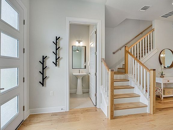Beautiful NEW home with gorgeous views of Robert Browning greenway available in the desirable neighborhood of Mueller! Completed in Feb of 2020 and still under builder's warranty! This gorgeous and flexible floor plan boasts an open living room/kitchen/dining, study and powder room on the main floor and 2 bedrooms, 2 full baths, retreat, balcony and laundry on the second floor. Light hardwood floors are found throughout the first floor and staircase, grey shaker cabinetry throughout, white quartz countertops, stainless steel appliances (refrigerator and washer and dryer convey) and 2-car garage make this home an easy turnkey purchase. Close to all that Mueller has to offer-parks, restaurants, HEB, The Thinkery, Alamo Drafthouse and so much more!