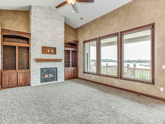 Vacation every day in this luxury custom home located on a 66 acre pristine ski lake with water skiing, jet skiing, tubing, wake boarding, kayaking, great fishing and more! Spectacular lake views throughout without the beach maintenance of living directly on the water. You can skip the expense of a boat dock since this home includes a covered boat slip. Like new, this split bedroom ranch style home with finished basement features 4 bedrooms, 3 baths plus additional unfinished 2 bedrooms and bath. Upgrades include granite counter tops, HDWD flooring, Bosch upgraded appliances, built-in coffee/wine bar, over-sized 3 car garage for boat storage, surround sound, whirlpool tub, tile shower and much more! Convenient access to backyard living with Mid-level walkout to patio and Basement walkout. East facing backyard makes relaxing and entertaining on the covered deck or large patio even more enjoyable. Great price for the neighborhood plus lower specials! With close proximity to the pool and pavilion, there are plenty of activities for the whole family.