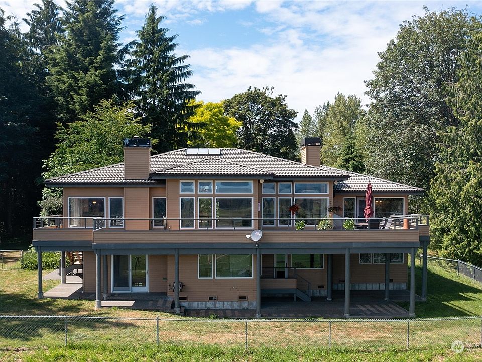 This private 5 acre estate with a paved drive in the gated Eagle Ridge community includes a 3,653 sqft main house with open floor plan, tons of natural light, panoramic views of the Stillaguamish Valley, river & mountains from both levels & a full length wrap-around deck. Main floor primary has radiant floor heated ensuite, jetted tub, rainfall shower, walk-in closet & separate deck access. Lower level with 2 beds/1 bath, second living area & bonus rooms (one with bar!) give this home so much flexibility. Detached barn/shop has a 1,200 sqft 2 bed/1 bath additional unit with party deck. Large shop for all your toys & projects, including a wood stove, 1/2 bath & RV hookups. This oasis minutes from I-5 is the property you’ve been waiting for!