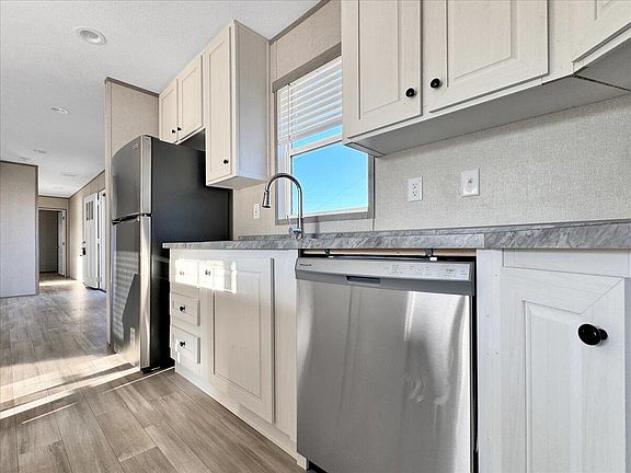 Here is an exceptional opportunity to own a stunningly affordable home in East Crestview! This brand new, never before lived in, 2024 Clayton home features 1,216 square feet of well-designed living space, and is conveniently located in the peaceful community of Triple Lakes Estates. You will enjoy living with no HOA and away from the busyness of the city. Enjoy quick and easy access to I-10 and Highway 90, and a short commute to Duke Field or Eglin AFB. You're also just a mere 45 minutes away from our world famous beaches! ** New gravel driveway being installed soon; photos will be updated. ** Step inside to discover a thoughtfully designed interior that embraces both style and functionality. The spacious kitchen is adorned with a charming kitchen island, creating a central hub for family gatherings or entertaining guests. Enjoy the convenience of brand-new stainless steel appliances and a sleek kitchen hood, perfect for culinary enthusiasts and those who appreciate contemporary design. The large master bedroom leads into the luxurious master bathroom with dual vanities and a large soaking tub to unwind in after a long day. Large windows throughout the home allow an abundance of natural light to flood the living spaces, creating a warm and inviting atmosphere. The home also features a hidden laundry and storage room for added convenience.