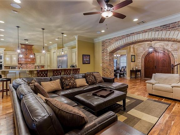 Gorgeous European style home built by Brooks Norris and located in a gated community in the center of town. Exquisite details throughout including hard wood flooring, brick/rock accent walls, custom cabinets, granite counters, & top of the line appliances. The open kitchen is accented w/ vaulted ceilings & wood beams. There's also an office/flex room, formal dining, media room, safe room, large utility room, and a bonus play/game room. Large outdoor living space w/ stamped concrete, kitchen, & fire pit.