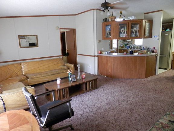 Excellent opportunity! Reasonably priced 3 bed/2 bath manufactured home on 4 acres. Home sits back from road. Private setting with treed borders.Pretty land with room for garden and livestock. New roof in 2010. Good condition inside and out - perfect starter home or country get-away. Screened back porch. Large covered carport for 4 cars. Retired single-wide on property.Well and septic,but is fitted for city water. As-is sale.