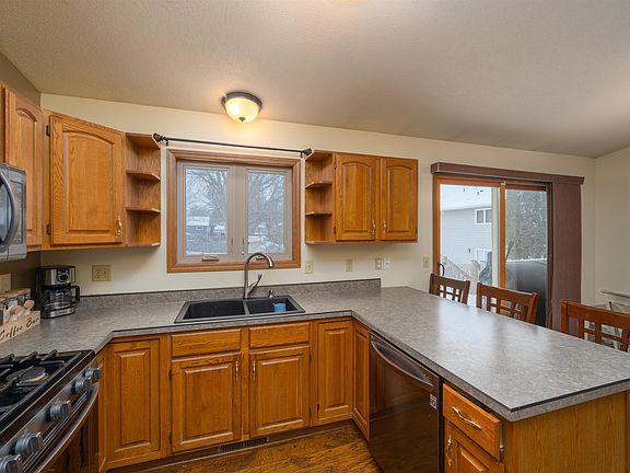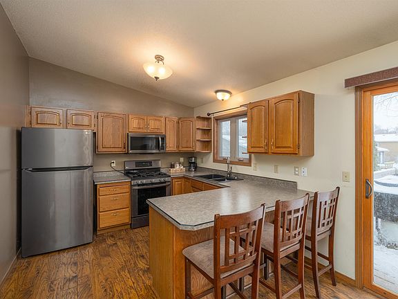 Spacious home in Eastside Sioux Falls with 4 bedrooms & 2 bathrooms. Main level includes 2 huge bedrooms w/large double closets, and a full bathroom w/linen closet. Kitchen includes smudge proof Stainless Steel appliances & is open to the spacious dining room w/sliding door to a 2-tier deck & fenced backyard. Living room includes a vaulted ceiling & a picture window. Lower level features 2 more bedrooms, one w/double closet & one w/large walk-in closet, a 3/4 bath w/linen closet, a big family room set-up as a movie theater room, laundry/utility room & under the stairs storage. Property includes a 2-stall garage.