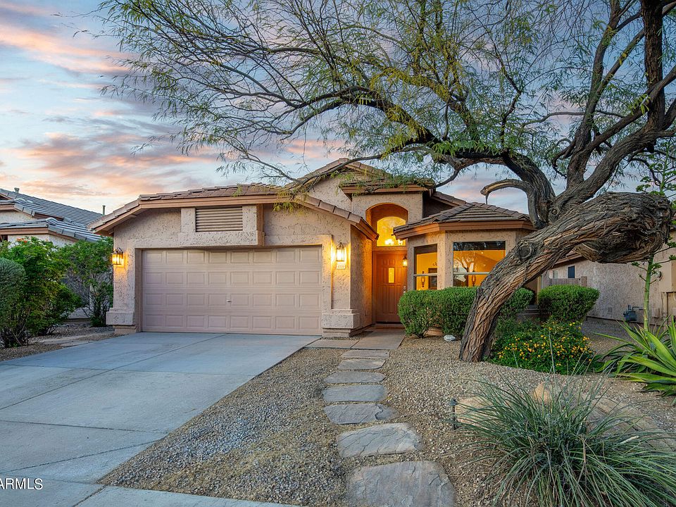 This single level Desert Ridge home shines! Lots of upgrades-new A/C (2022); tile flooring throughout; kitchen-cabinets, granite countertops, stainless steel appliances, sink & backsplash; primary bath-jacuzzi tub, granite countertops & cabinets; guest bath-cabinets & granite countertops. Open and spacious floorplan with kitchen overlooking the Great Room with fireplace. Gorgeous backyard great for play time, entertaining or relaxing with pool, artificial turf & covered patio. Low maintenance and beautiful! Located close to all of Desert Ridge shopping, restaurants and entertainment - High Street, Desert Ridge Marketplace, JW Marriott & Revive Spa, Wildfire Golf Course as well as highly-rated schools. It's all here. Welcome!