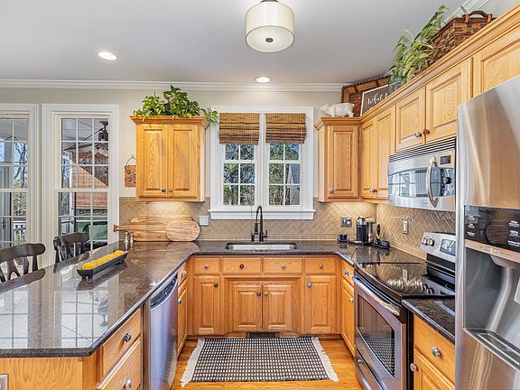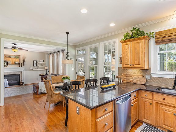 MULTIPLE OFFERS RECEIVED. Offer deadline 3/30 at 6 pm. This custom beautifully maintained home, nestled on a peaceful .76-acre lot, is a true gem! Pride of ownership is evident throughout. The light-filled, open floor plan features granite countertops, stainless steel appliances, tile backsplash, and hardwood floors throughout the main level. Smooth ceilings, recessed lights, and crown molding. The formal living room/office, cozy breakfast nook, and separate dining room provide plenty of space for entertaining. Updated bathrooms include a primary suite with dual vanity, garden tub, separate shower, and private water closet. Home also boasts a bonus room and a huge walk-up attic with over 500 sq ft of potential. The garage features a man-cave area that is fantastic but can easily also be used for parking. Step outside to a private outdoor living space perfect for entertaining—complete with screen porch, deck, and enormous paver patio. Quaint matching outbuilding offers extra storage beyond the garage and attic. The spacious yard is beautifully landscaped, and numerous updates including new windows and a roof installed in 2019. Walking distance to schools, library, greenways, parks, tennis and sports fields. Also convenient to shopping, restaurants and new 540 expressway. This home is truly a must-see!
