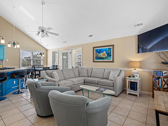 Turtle Groove is a 4 bedroom, 3 bath home located in the Cherry Grove section of North Myrtle Beach. This home sleeps 10 (8 in beds, 2 on futons). Turtle Groove is on the 2nd row (300 feet from the ocean) with an ocean view and channel view. The main living area is an open plan with tile floors, loveseats, swivel chairs and a 55" smart 4k TV and blu-ray player. All TVs have streaming capability. There is also a well stocked kitchen with quartz counters, gas cook top and seating for 10 (table plus bar). Off the main living area is the master suite with a queen bed, 32" smart TV, large walk-in closet and full bath with washer/dryer. On this level you also have the use of the 4th bedroom which is also sometimes used as a Carolina room with a twin bunk bed (2nd bedroom), 32" smart TV with gaming console (Nintendo Wii), and a sitting area overlooking the Cherry Grove Channels with a big picture window! The upper level has 2 bedrooms, each with a queen bed and 32" smart TV. These rooms share a full bathroom The lower ground level heated and airconditioned game room includes a full size air hockey table, ping-pong and foosball table, and another 55"smart TV. In the game room are a kitchenette, 2 futons, couch, and a full bath. The room also has 3 bar height tables with seating for six and easy access to the covered outdoor grilling/lounging space. This large area has additional 800 plus area of fun relaxation and sleeping area beyond the square footage of the 1st and 2nd floor already listed. This area is accessible from the outside only and not from the main area of the house. The WOW area of the home a great place for hanging out for especially those seeking fun, watching a game. Outside you will find both a full sun lounging deck off the main floor and beneath it is a fully shaded hangout spot with a fully fenced yard, gas grill and picnic table and hammock chairs, outdoor shower and even a shower for your pet! Enjoy two public access points for the Beach on the same block just a few steps from the house. Turtle Groove is a short drive to grocery stores (especially Boulineau’s the largest grocery store in the area), shopping, golf courses, entertainment, and restaurants. Enjoy your time shopping and dining at the nearby Barefoot Landing, Tanger Outlets, Broadway at the Beach, and many other specialty shops. The warm South Carolina sunshine and beautiful wide beaches await your visit. Turtle Groove makes the perfect relaxing stay for your family and friends or your home in the Paradise! The outside area of the home allows parking right in front of the home. The area on the side of the home as you enter is enclosed by fencing and screening so your pet can move freely. There are outdoor security cameras on this property. The sellers have made this home turnkey ready. The home has all new a/c units. New Vinyl siding, new roof. The stairs to the second floor have been replaced and all new decking and steps. Great care was taken so the area could be enjoyed and also have some shade from the weather and sun. The sellers have installed attractive lighting on the outside especially in the enclosed area (new front privacy fence and low yard maintenance area) for spending time with family and friends. The kitchen has a new gas top stove and new stainless steel appliances. The counter tops are newly installed quartz, sink and disposal. Nest thermostat with outdoor security camera. The propane feeds the new tankless hot water heater, new gas cook top stove and outdoor gas grill. The roof is also new and the house has recently been painted. The some flooring has been replace in the main living areas and stairs. Google the home address: 4704 Lake Drive, North Myrtle Beach and call Cyndee the best rental manager in North Myrtle Beach. This is a move in ready home with location, location, location. Easy to see. Give a call.