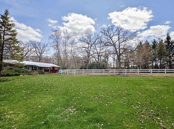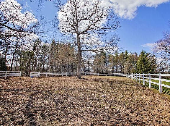 FRESH PAINT! Solid Ranch home on 3 acres with an outbuilding. This lovely country property has gorgeous mature trees, PVC fenced horse riding arena, additional 1 1/2 acre fenced pasture, beautiful perennials and country views. The ranch home is ready for your ideas featuring a lovely front porch with built in flower beds. The entry leads you into the living room with wood burning stove fireplace and hardwood floors. The kitchen has a open floor plan with 2 closet pantries, all appliances included and dining room with plenty of table space. The main floor also features 2 bedrooms, 2 1/2 bathrooms and 1st floor laundry. The basement is partially finished featuring a 3rd bedroom with a fireplace, rec room area and utility room. The furnace can utilize propane or the attached wood burner. There is a 2 car attached garage and also an outbuilding with room for 2 additional cars. The outbuilding/horse barn also has a hay loft area, 2 stalls, water and electric. The property is ready for your horses or other animals with a large fenced pasture and outdoor horse riding arena; it also is riding distance to Rush Creek's horse trails with around 6 miles of trails. Property sold as-is.